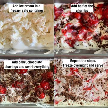 Cover the container and freeze overnight or at least 7-8 hours for getting the tastiest Black Forest Ice Cream! Serve in a cup or cone.