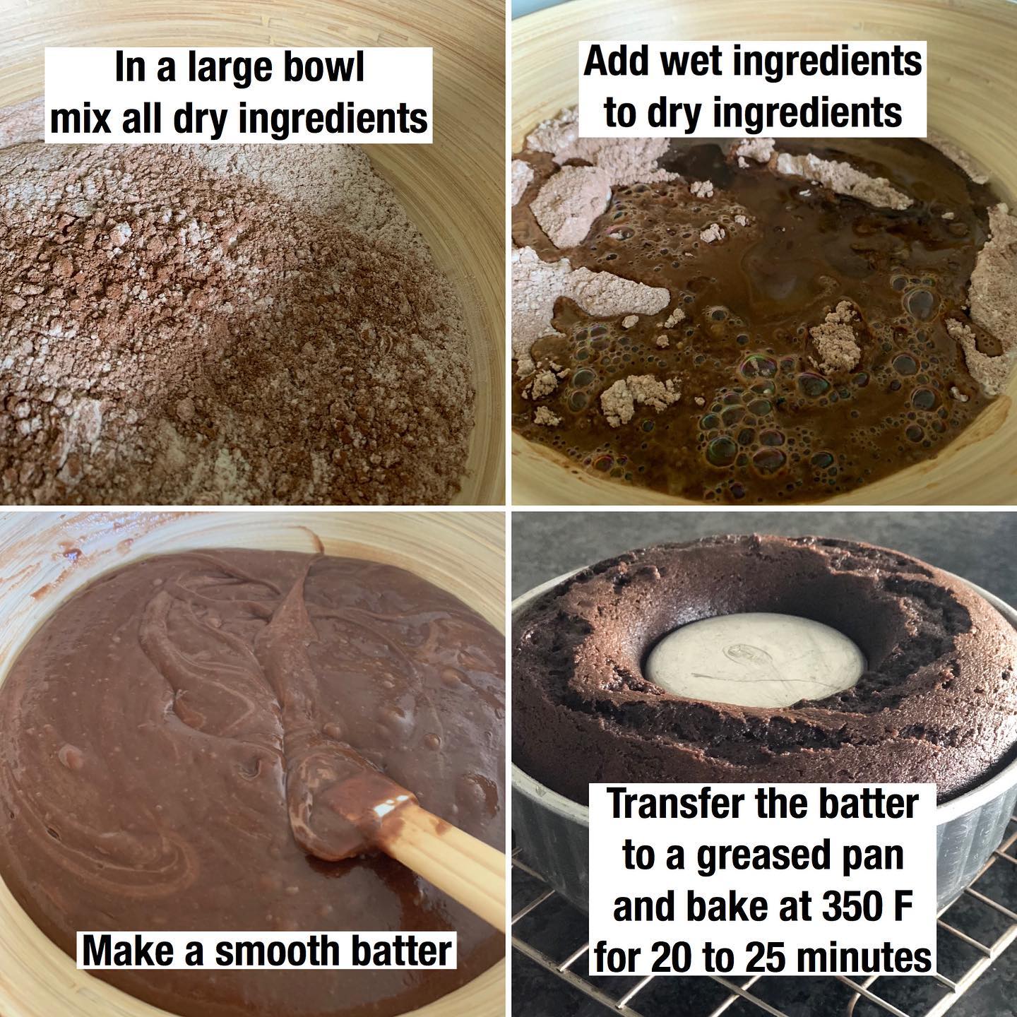 Transfer the batter to a greased pan and bake at 350 F (180 C) for 20 to 25 minutes or a tooth pick inserted in the cake comes out clean.