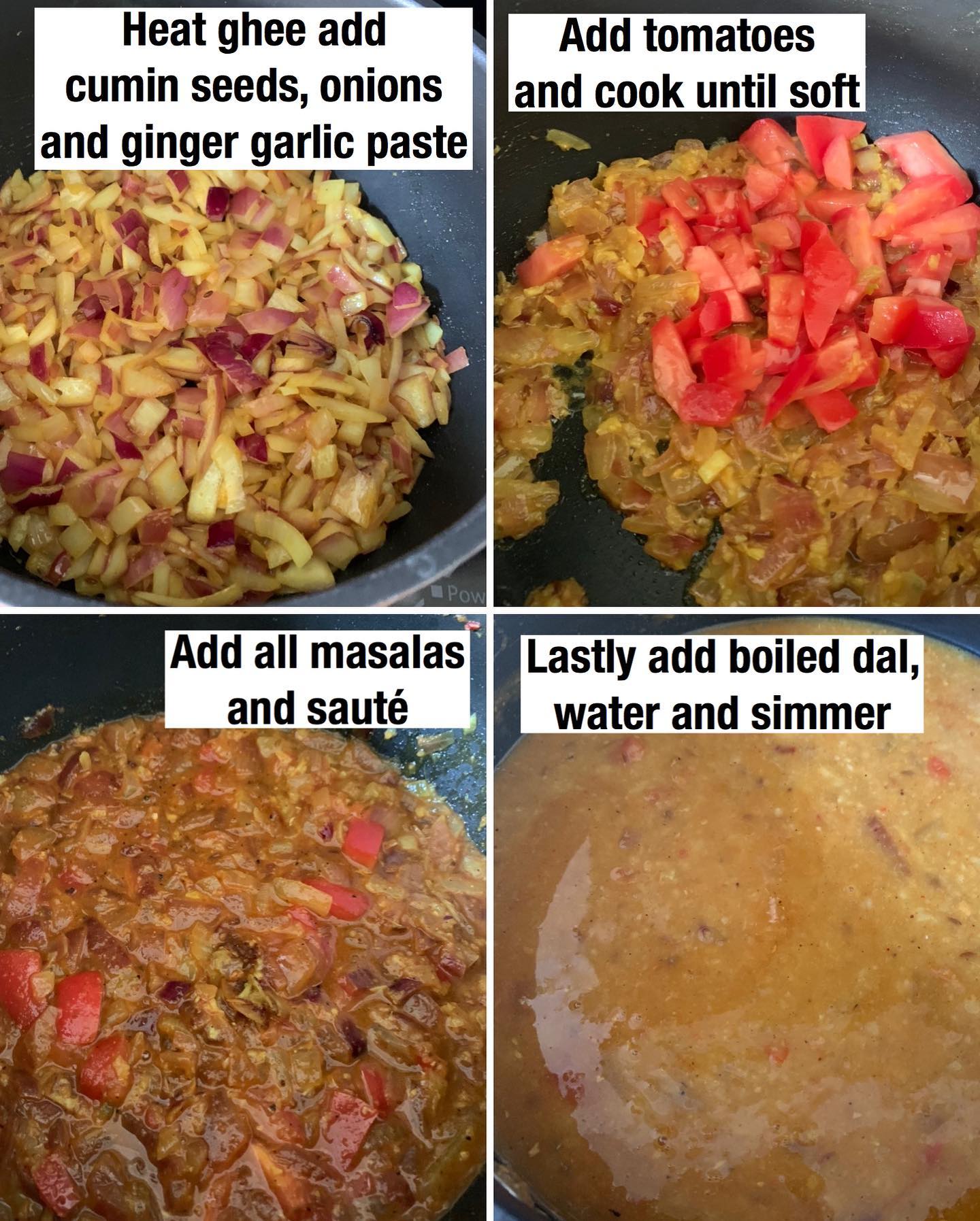 Lastly add the boiled dal, 1-2 cups of water. Simmer for few minutes on low.