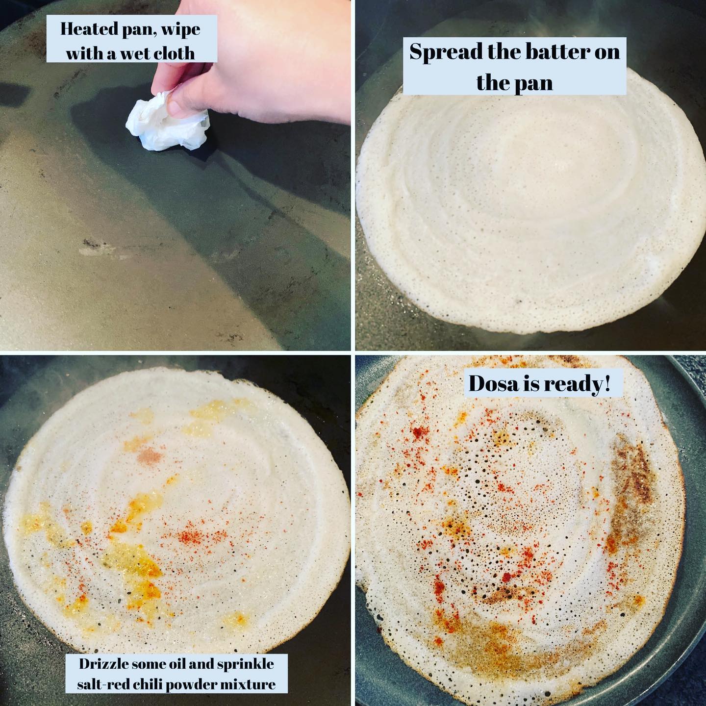 Drizzle some oil, salt-red chili powder mixture. Cook until dosa is crispy.
