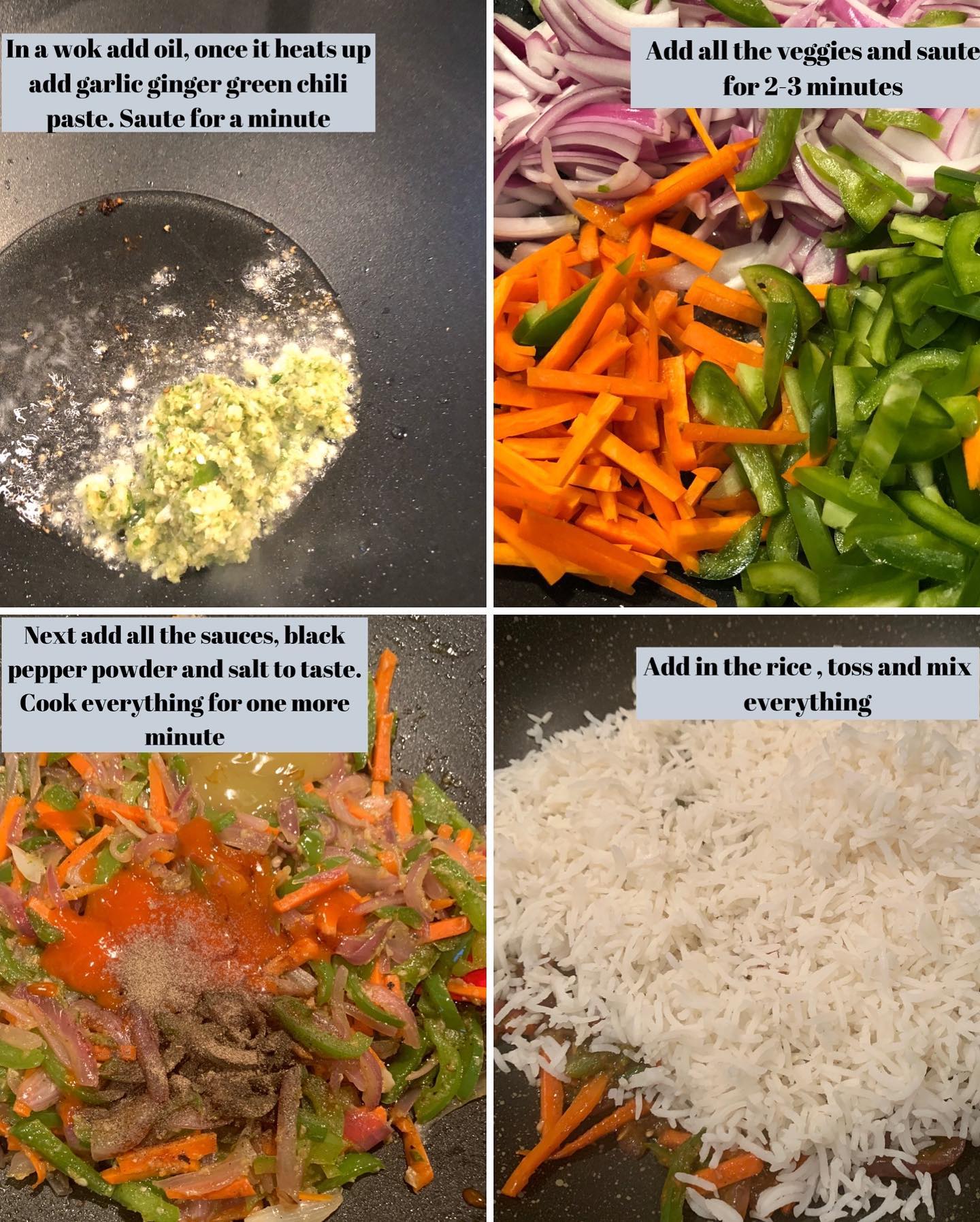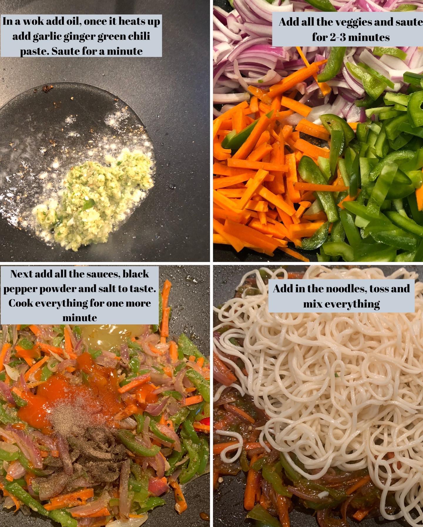 Fried rice and Hakka noodles. One recipe two meals! Use the same ingredients to make two separate dishes!! Being a foodie I love all cuisines, but Indochinese tops the list! I can eat Indochinese everyday!! The spicy garlicky flavor makes my mouth water everytime. I like my Indochinese very spicy. I do add the sauces but the real spice comes from the garlic ginger green chili paste. Buying all the sauces from the Indian stores is the key to the perfect Using red chili sauce instead of sriracha and soy sauce from India grocery makes a whole lot of difference in the recipe! Follow the same steps and make rice or noodles!! Pick your favorite one and try the recipe!