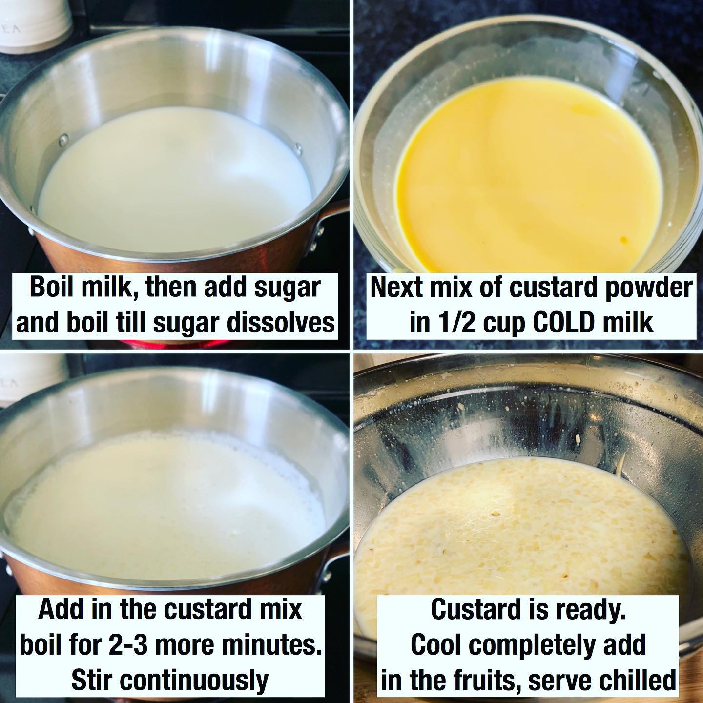1. If you don’t have custard powder you can use corn starch and then add few drops of vanilla extract.