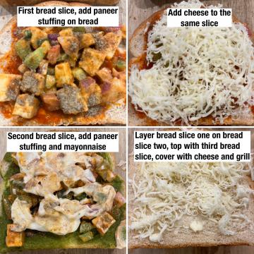Bake on a tava or a pre heated oven at 350 F till cheese is melted and sandwich is crispy.