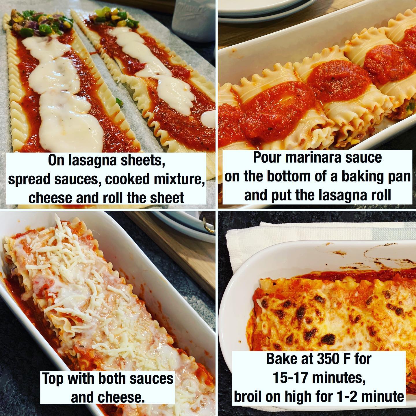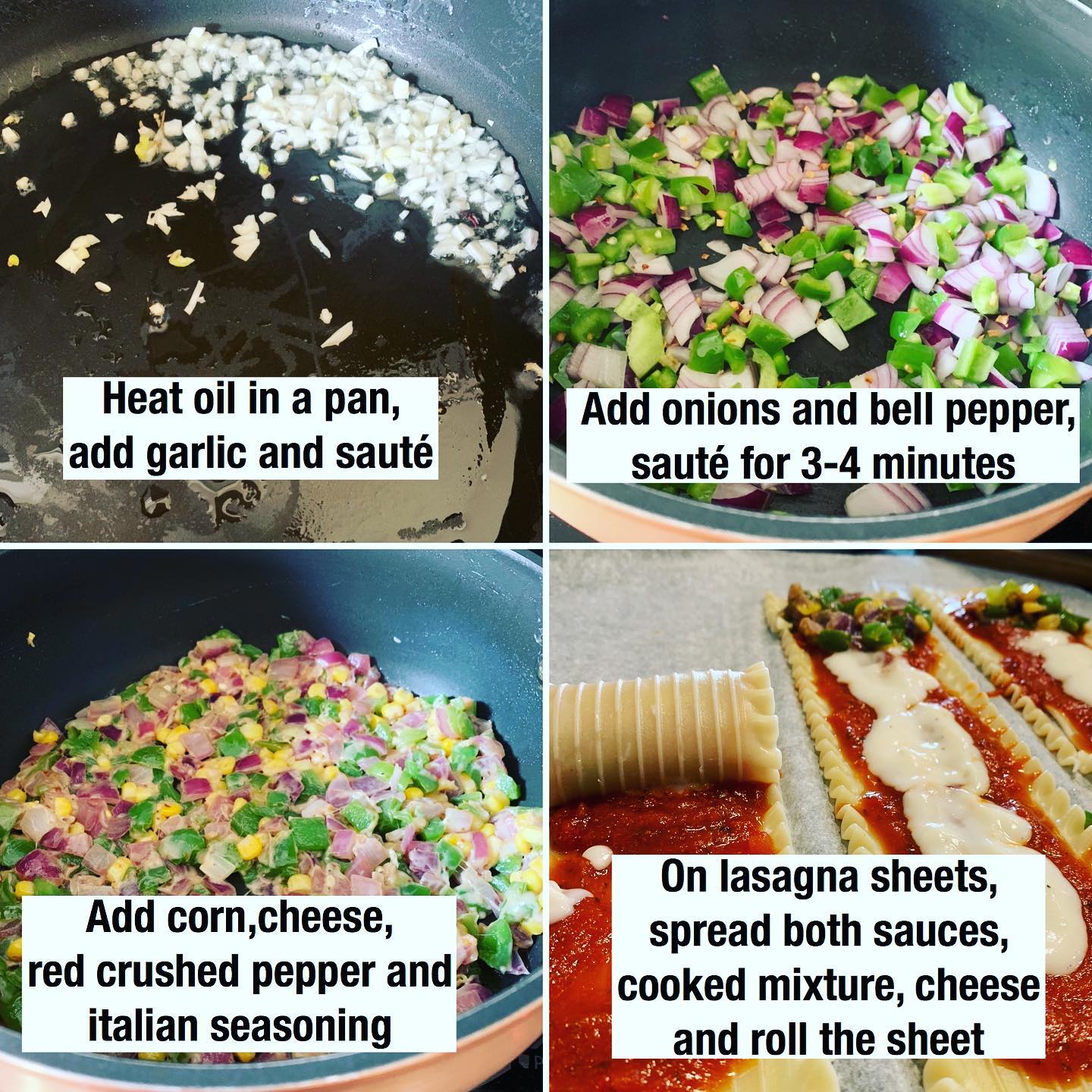 Take lasagna sheets, spread both sauces, cooked mixture, cheese and roll the sheet.