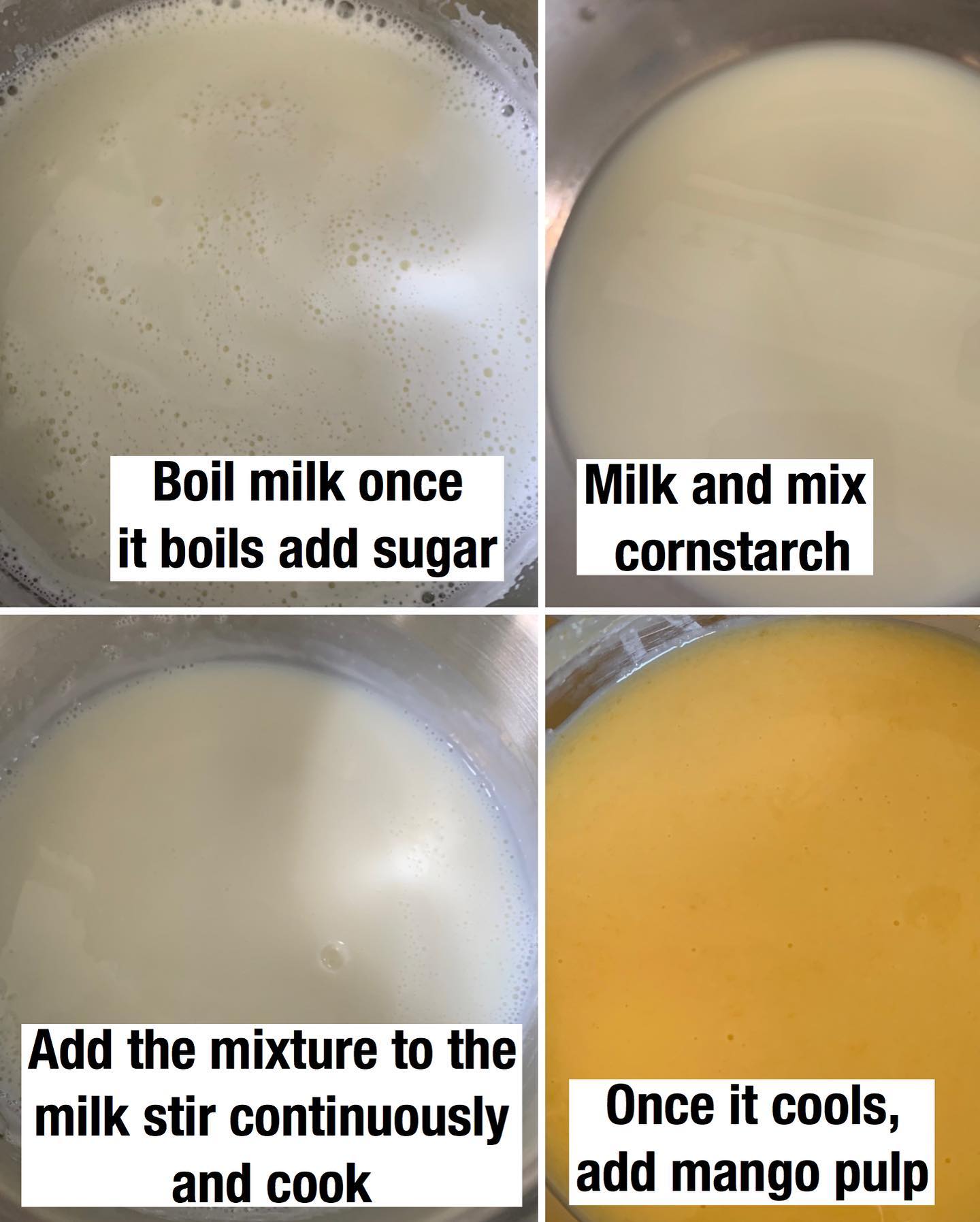 Add the milk-cornstarch mixture to boiled milk. Stir continuously for 3-4 minutes till the milk thickens and is cooked.