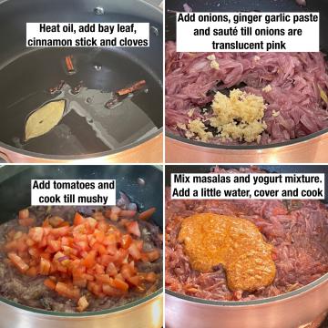 Take yogurt in a bowl and add 1 tsp of all the dry spices. Mix and add it in the onion-tomato gravy.
