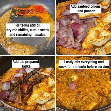 Pour this tadka on the gravy. At this time add sautéd onions and paneer. Mix everything carefully and serve!