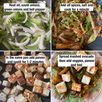 And it a a Wrap!! Another quick and healthy weekday meal for you all. Paneer wraps are so easy to make with limited ingredients from your pantry. The stuffing is paneer cooked on Tava with regular spices and veggies. Spread some avocado on a wheat paratha, add paneer stuffing and roll it! So overall this is a very easy, healthy and delicious recipe of Paneer Wrap.