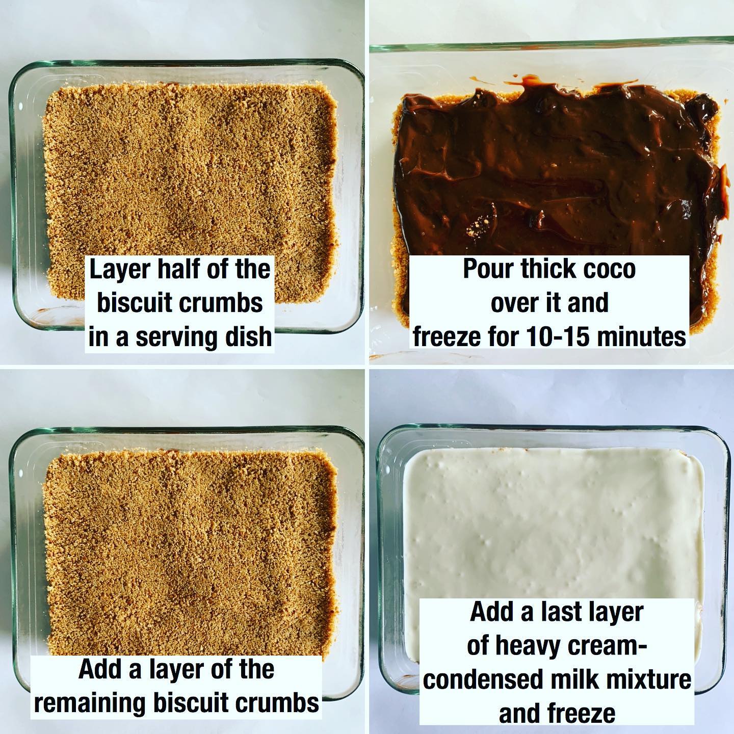 Add a last layer of heavy cream-condensed milk mixture and freeze for 3-4 hours before serving.