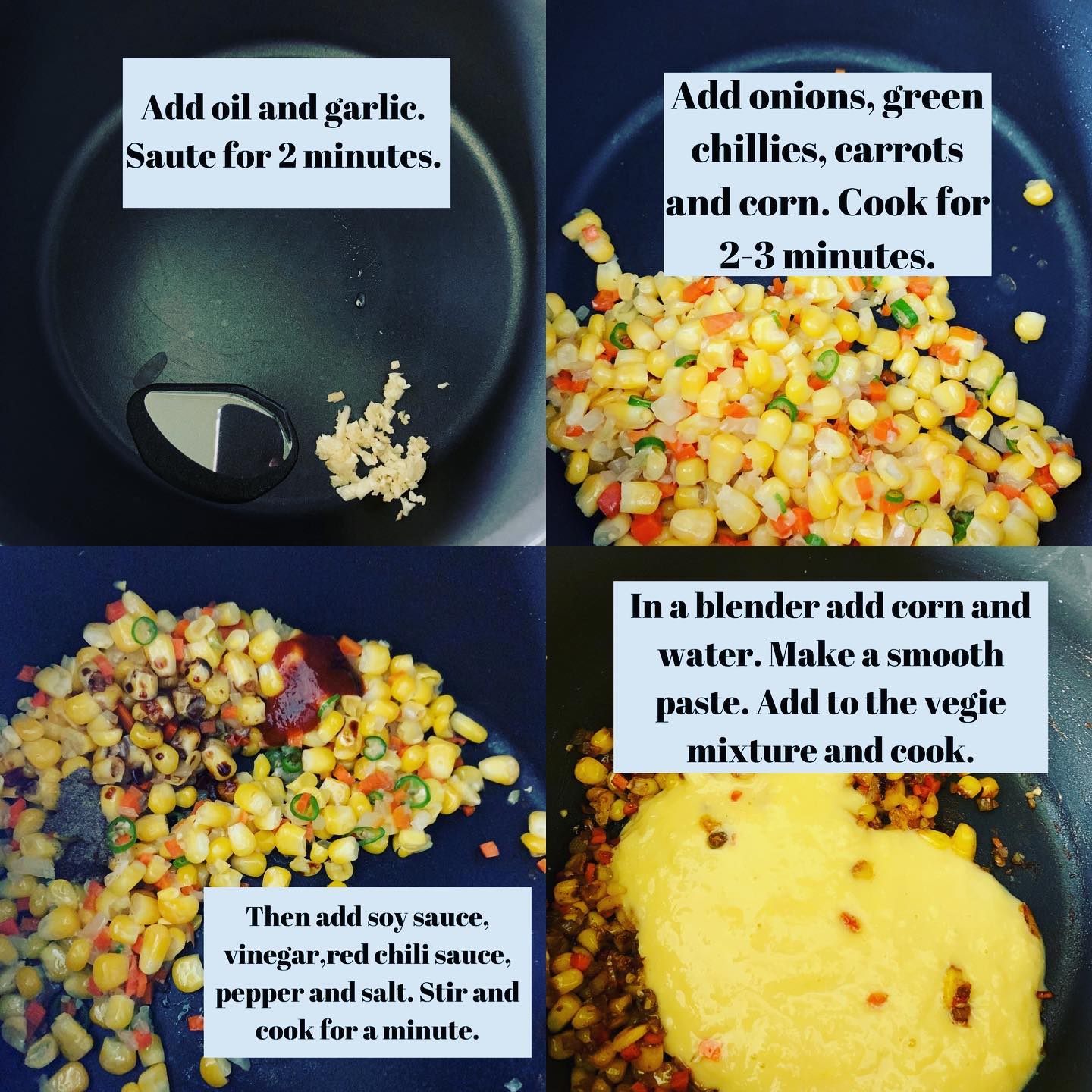 Take 1/2 cup of corn kernels and a 1/2 cup of water and grind to a fine paste.
