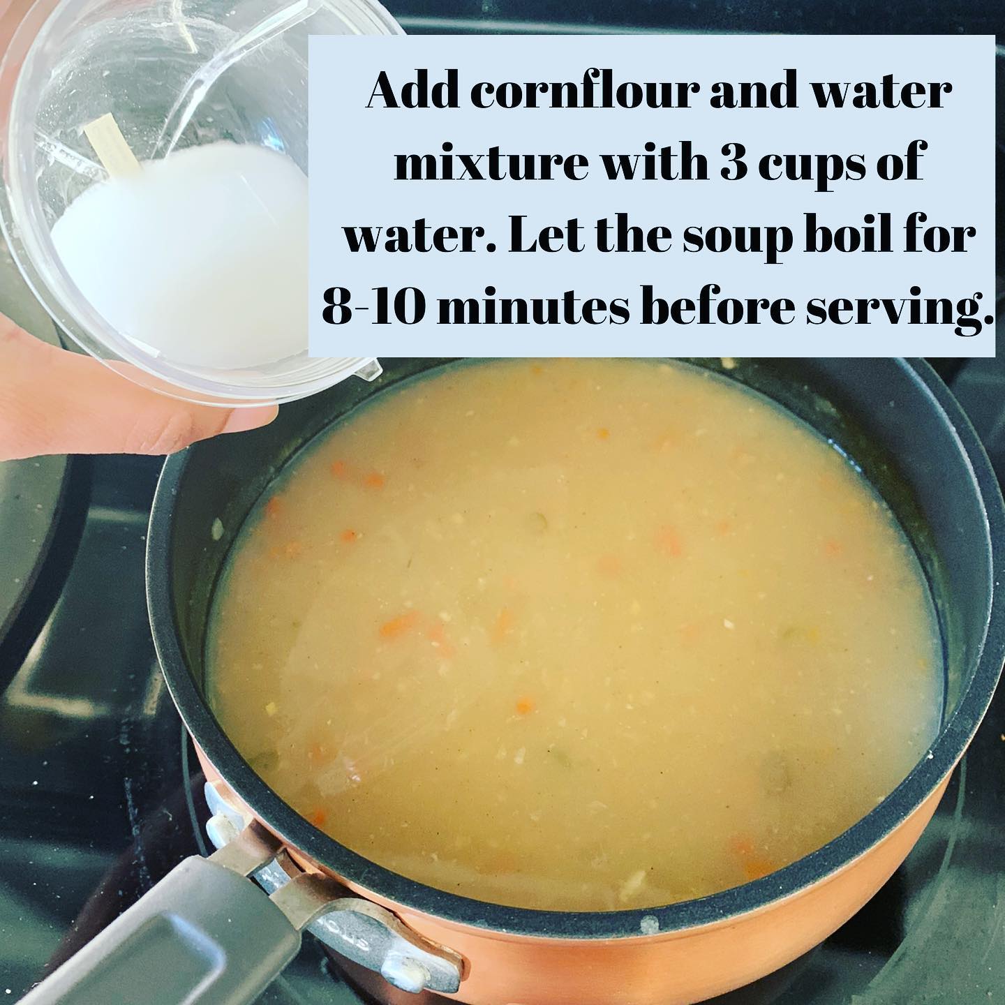 Before serving add the cornstarch mix and boil the soup for roughly 8 to 9 minutes and the soup is ready!