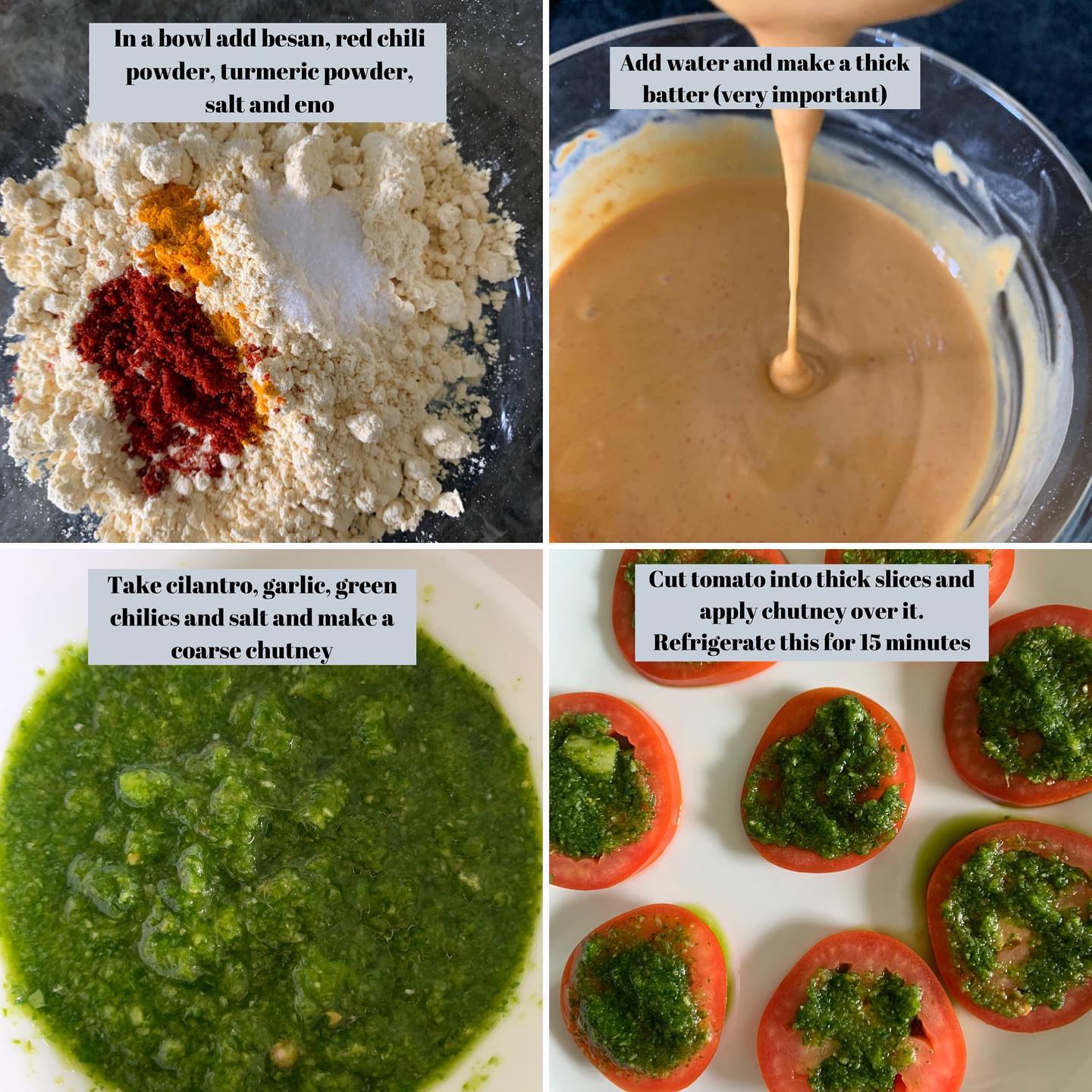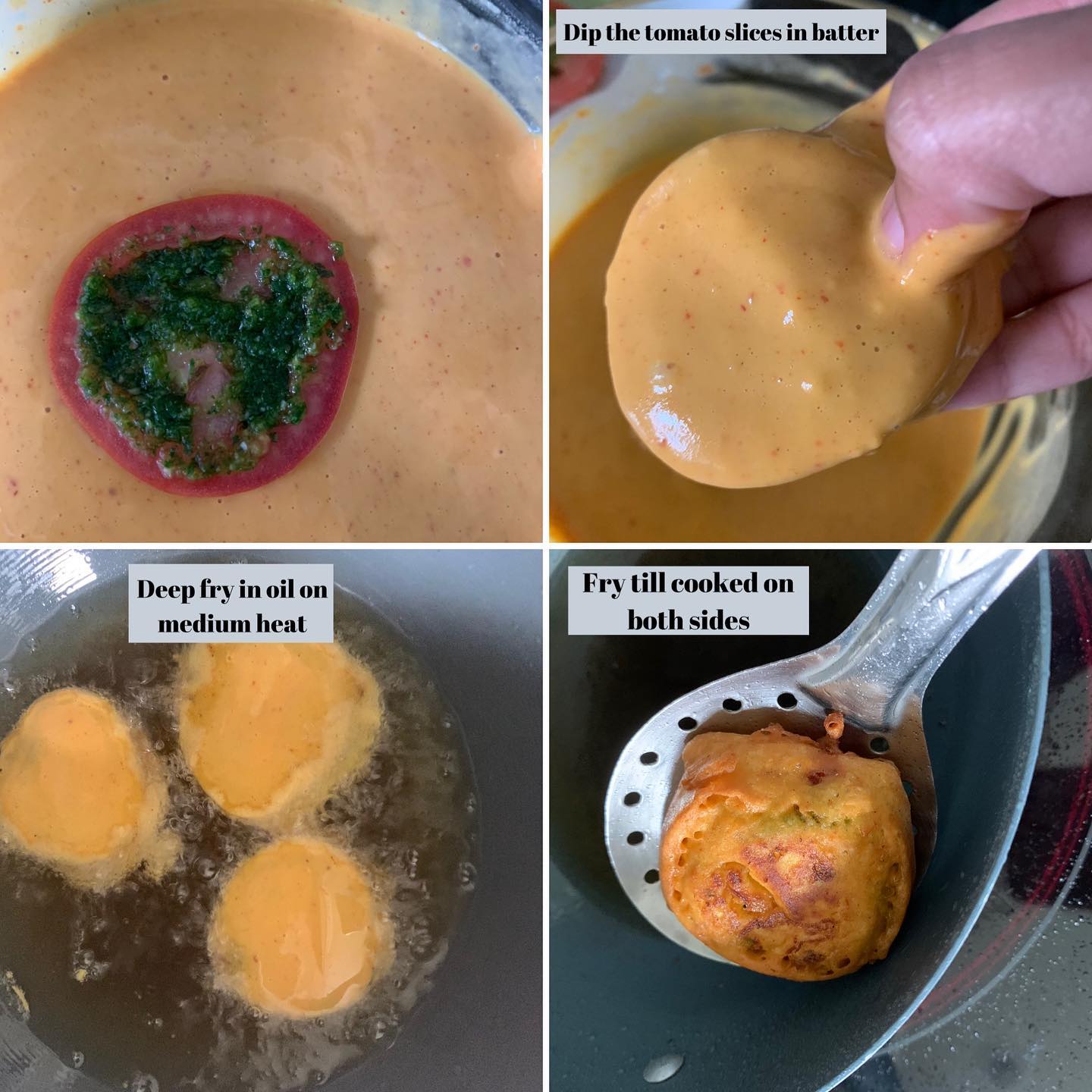 Rainy weather + Bhajia is the best combination! Made Surat’s World Famous ‘tameta na bhajia’ (tomato pakora/fritters) for brunch today! This dish requires no introduction for people from Surat! But for people who are not from Surat these are the most amazing and delicious pakoras. It is deep fried sliced tomatoes with a spicy green chutney. You all HAVE to try it! Dumas beach in Surat is the only place where I have never eaten these tomato bhajia. They are spicy and so flavorful! The cilantro garlic chutney makes these bhajias so delicious!!