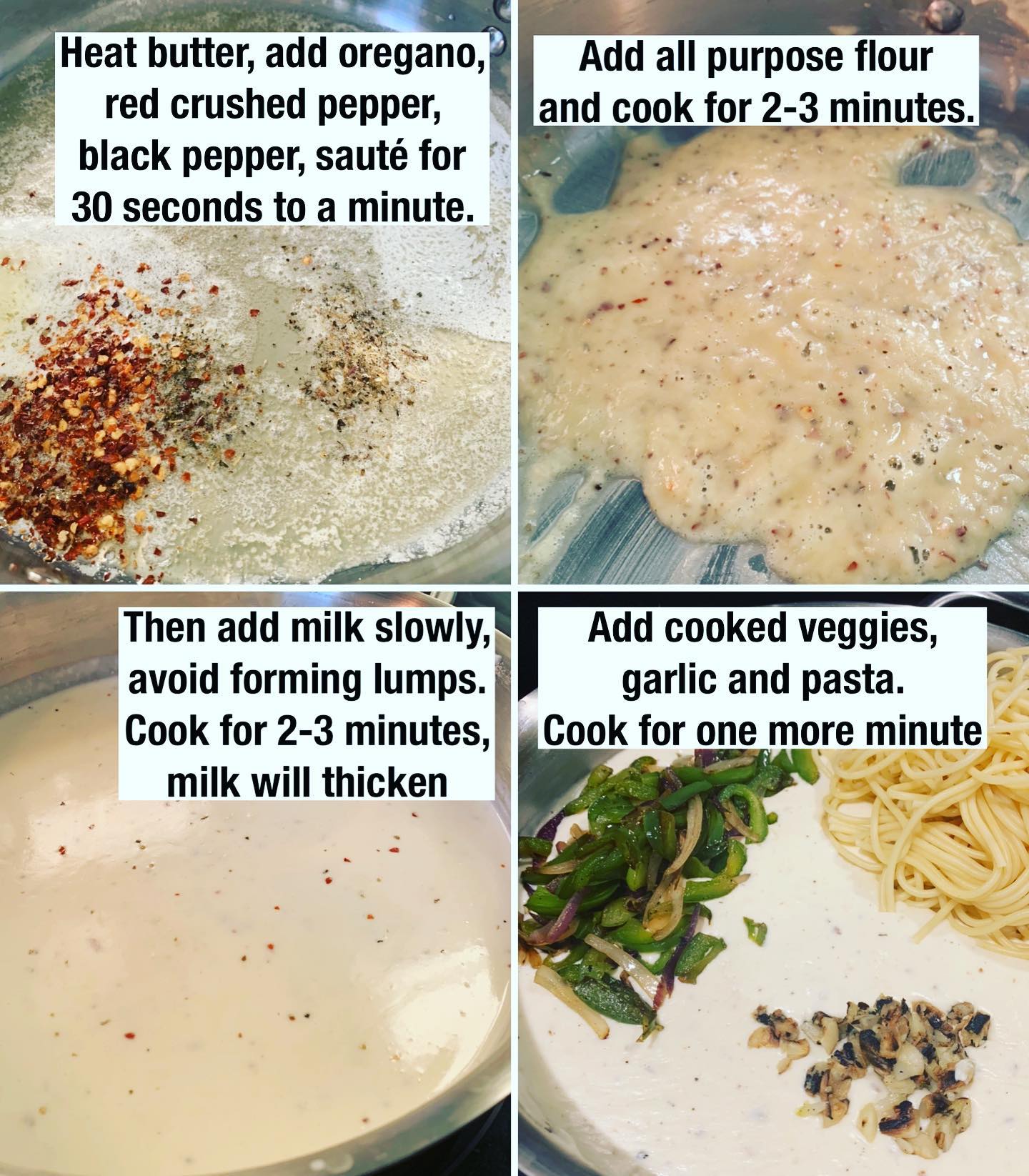 Creamy Garlicky and Delicious! This white sauce pasta is an ultimate weekend treat for your family! This pasta is drenched in homemade creamy white sauce which is infused with spices, roasted garlic and herbs. Make sure to roast garlic as it adds more flavor to the pasta. I added half and half instead of milk just to make this recipe more rich! If you like your pasta rich and creamy go ahead try this recipe and don’t forget to tag @foodstoriesbytwisha